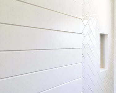 This chic and modern wall accent serves as an alternative to a more traditional backsplash or wall tile. Shiplap is typically an inexpensive wall covering solution that is sure to bring a lot of texture and depth to any space.